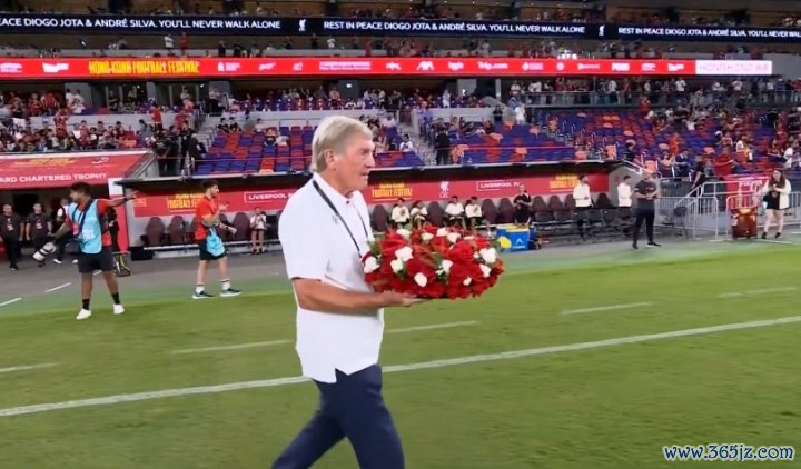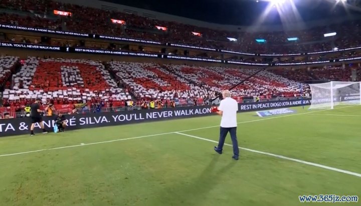 > YNWA♥️现场球迷拼出“DJ20”致意若塔,名宿达格利什献上花环