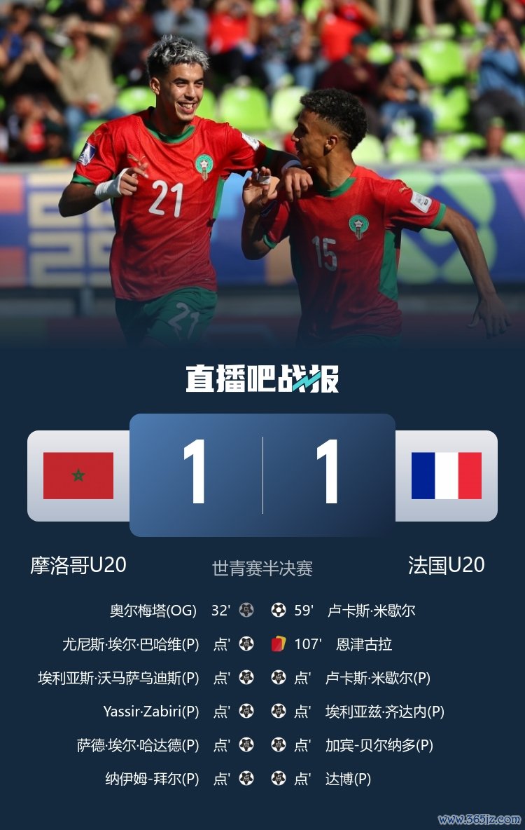 10月16日讯 世青赛半决赛,法国成例工夫1-1战平摩洛哥,最终在点球大战中落败,无缘决赛。