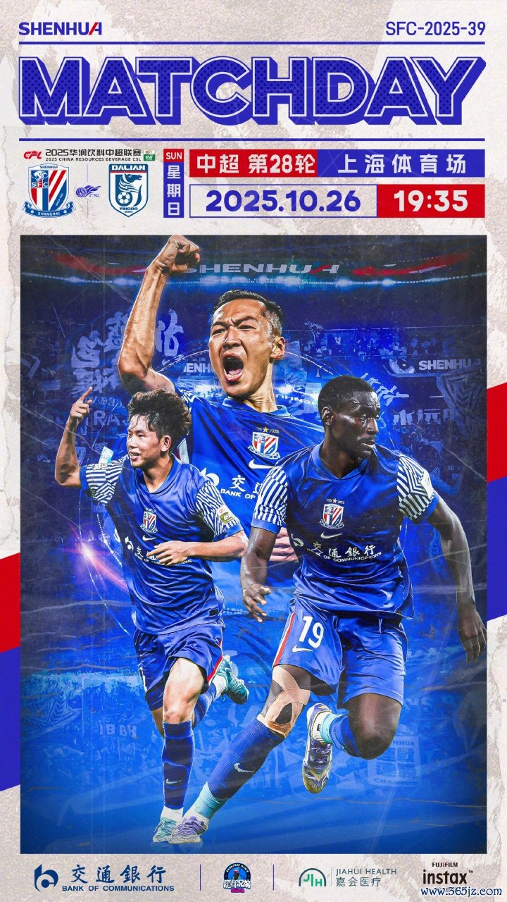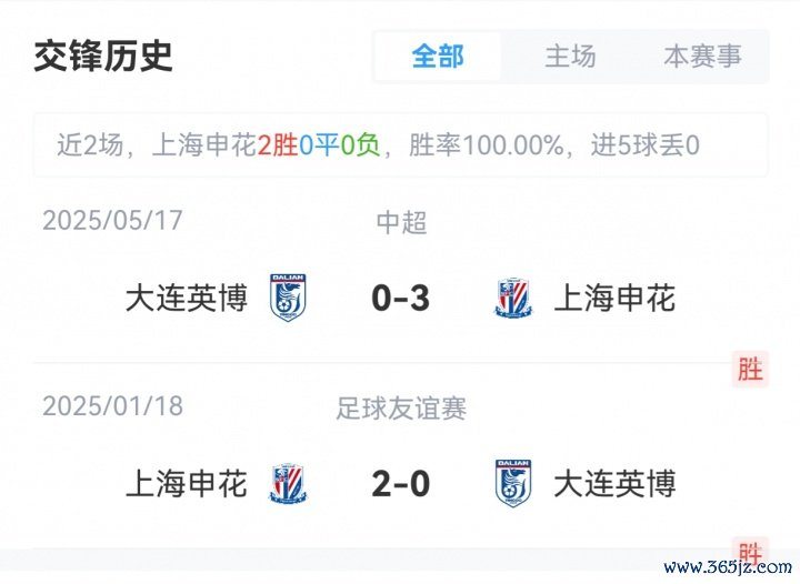 上海申花17胜6平4负积57分,排行中超第3;大连英博9胜7平11负积34分,排行中超第10。