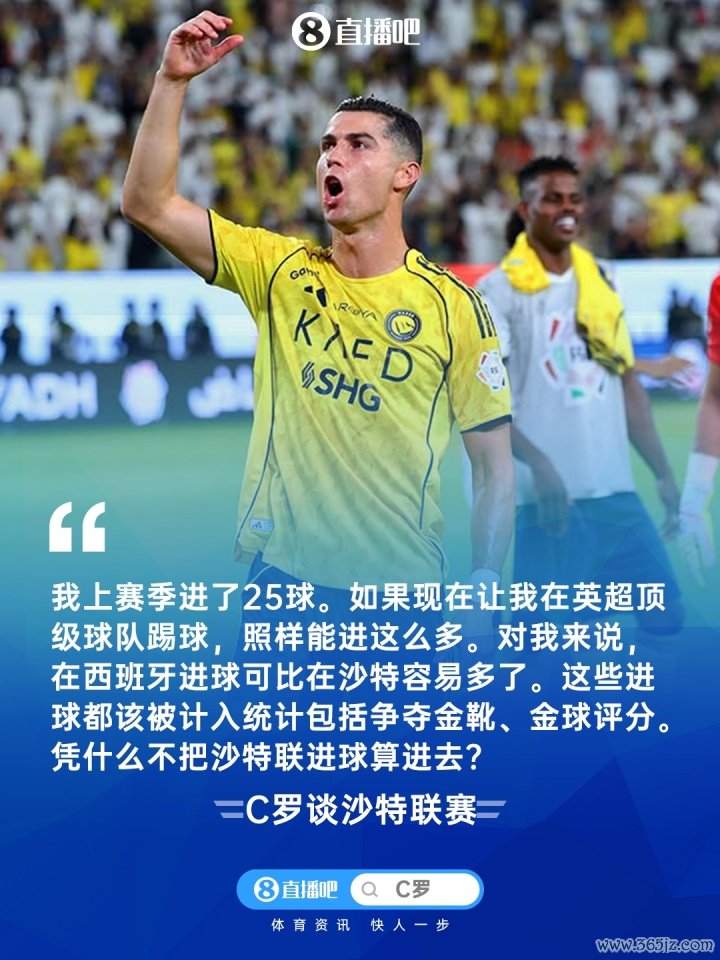 11月07日讯 C罗在最近的采访中再次相比了沙特联与欧洲各大联赛的分裂,况兼抛出了“沙特联比葡超强得多”、“法甲也就巴黎值得一提”以及“在西班牙进球比在沙特容易得多”等言论。