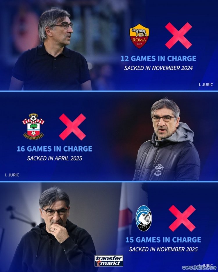 11月12日讯 亚特兰大晓示主帅尤里奇下课,尤里奇一年被罗马、南安普顿、亚特兰大三家俱乐部罢职,德国转会市集列出了本世纪素质最散工夫内说合被三家俱乐部罢职榜单,前四名尤里奇独占两席。