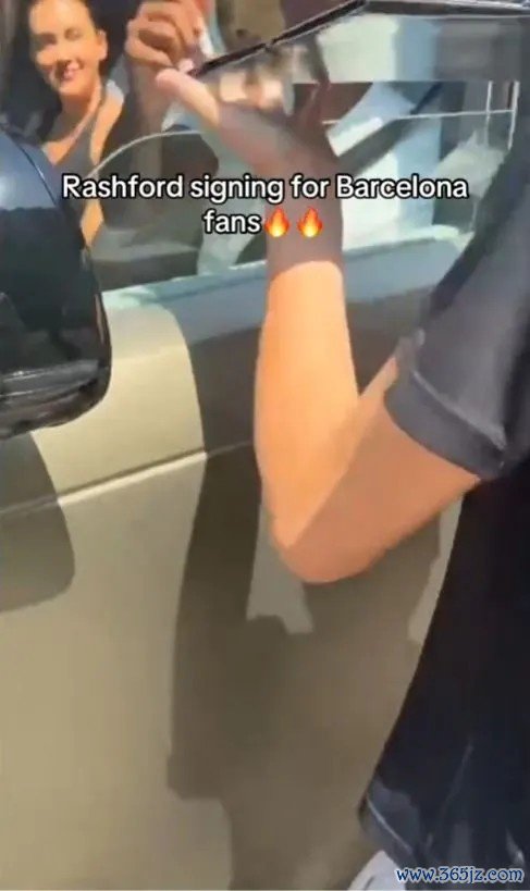 一段上传至TikTok的视频涌现,拉什福德从他的路虎揽胜车窗里为巴塞罗那球迷签名,露西亚则坐在副驾驶座位上。
