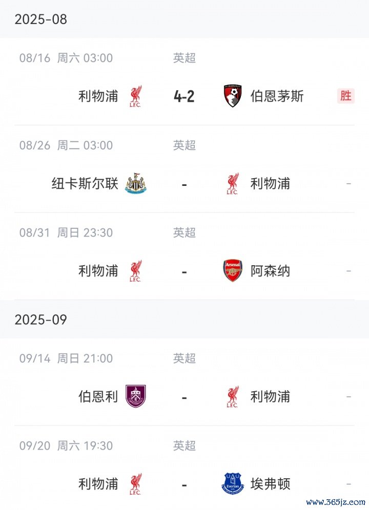 利物浦后续赛程↓
