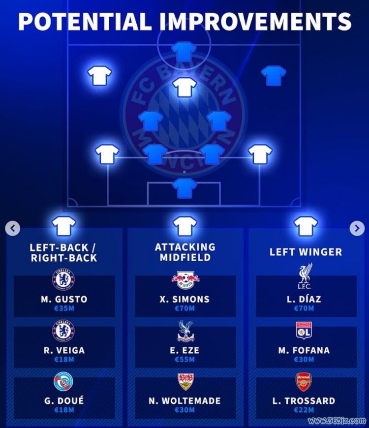 7月27日讯 拜仁在今夏转会阛阓四处碰壁,《转会阛阓》也列出了拜仁今夏的待补强位置及潜在狡计:
