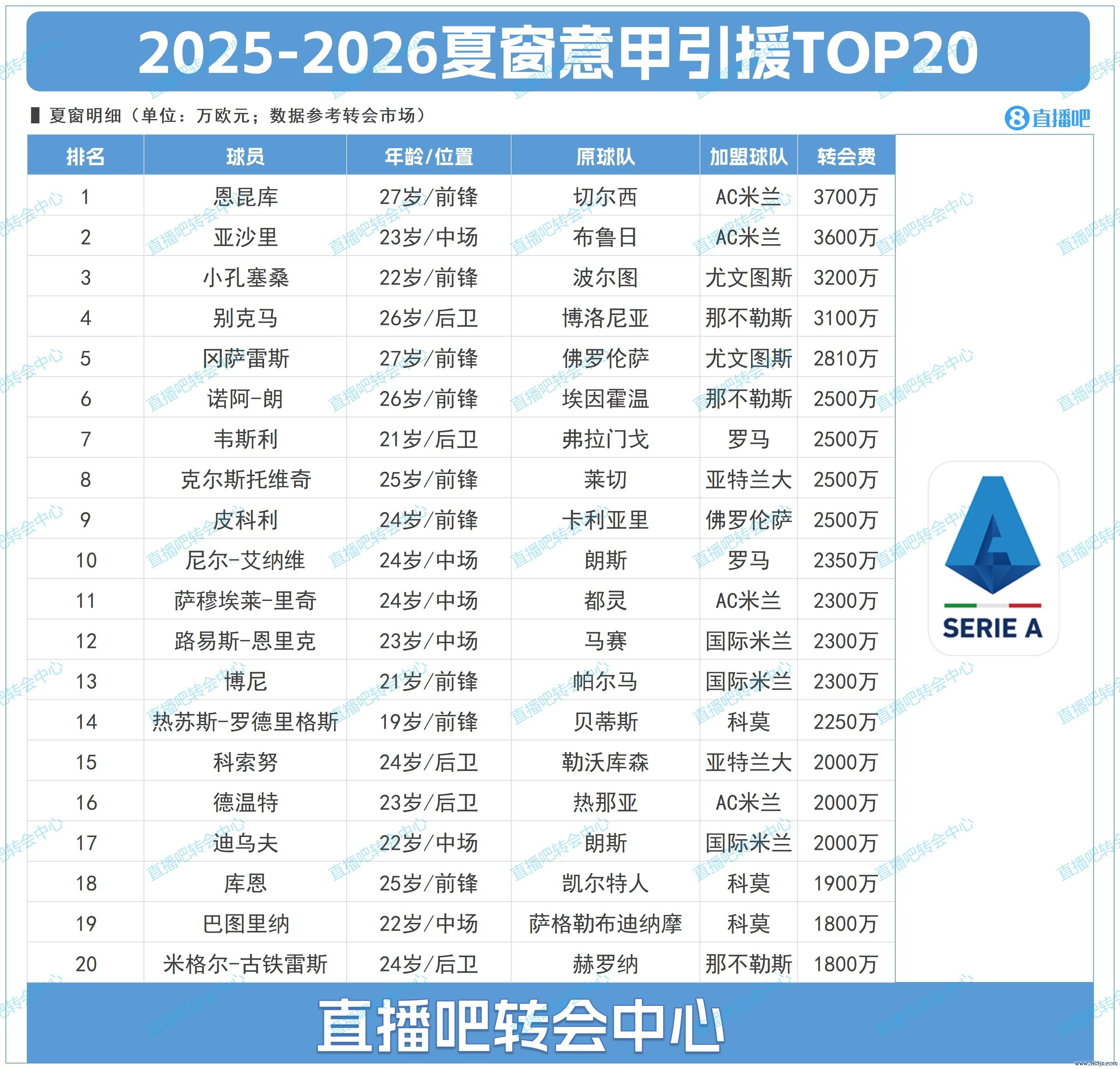 本年夏窗,米兰破耗3700万欧从切尔西买下恩昆库,恩昆库也成为意甲夏窗标王。开赛后恩昆库5场意甲登场108分钟,0球0助,意大利杯对阵莱切攻入一球。