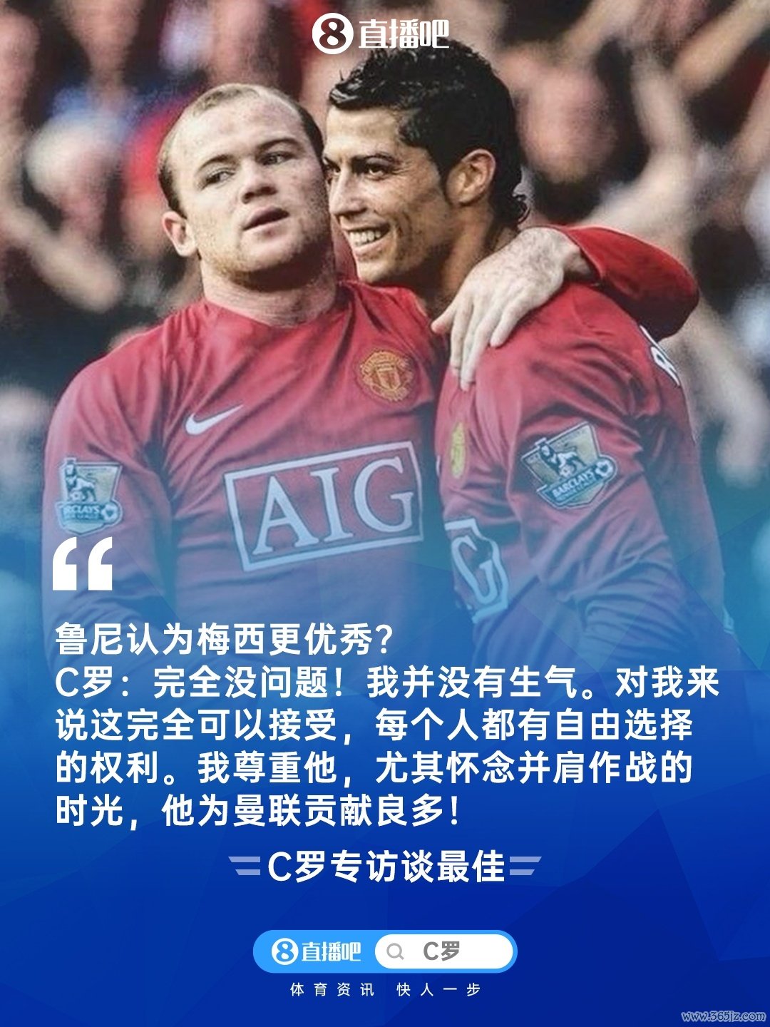 摩根:韦恩·鲁尼,你的老队友上周说他并不歧视你(尽管有东说念主那么说),他其实很可爱你,称你为天才。他说你们的关系比外界念念象的要亲密,但他仍然以为梅西更优秀。