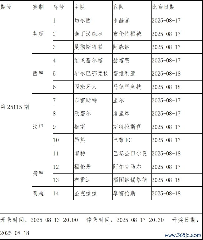 本周末,西甲、英超和法甲回首,五大联赛拉开新赛季帷幕,天下足坛的眼神再行聚焦欧洲大陆。周日传足赢输彩第25115期竞猜对象为英超、西甲、法甲以及荷甲、葡超赛事。本期对阵中,曼联阿森纳的强强对话尤为引东说念主细心。此外切尔西和巴黎圣日尔曼也接踵出战。