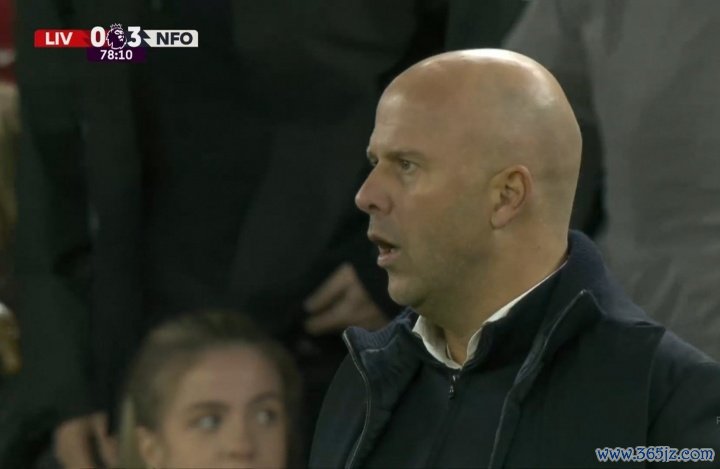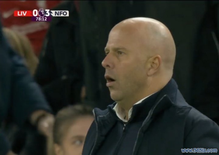 11月23日讯 利物浦vs丛林第78分钟,利物浦再丢一球,比分变为0-3!转播镜头立时切给了斯洛特!