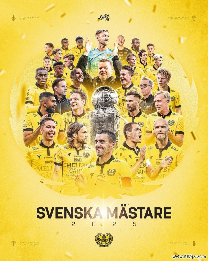 设立于1939年的瑞典村队米亚尔比,令东谈主讶异地队史首夺瑞典超等联赛冠军。他们旧年是联赛第10,去年是联赛第5,本年跃居第一。