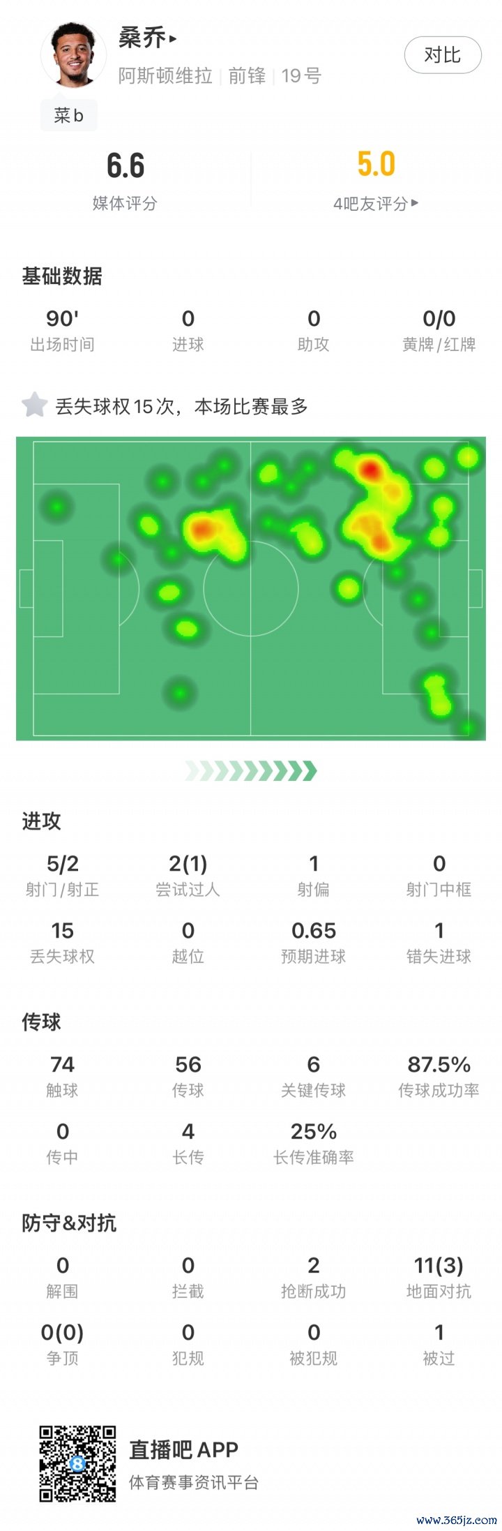 桑乔此役首发打满全场,5射2正,孝敬6次关节传球,不外他1次错失进球,仍无法冲破进球荒。