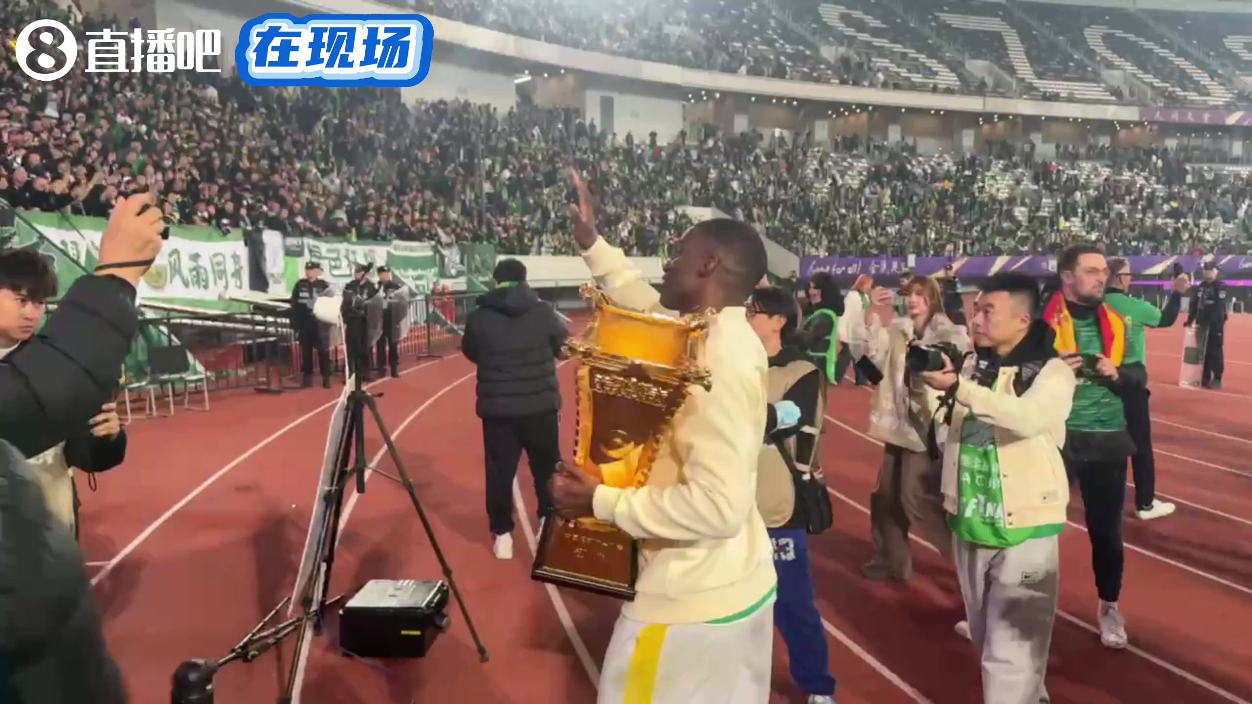 > 在现场|塞尔吉尼奥把奖杯递给球迷,法比奥捧杯和球迷互动