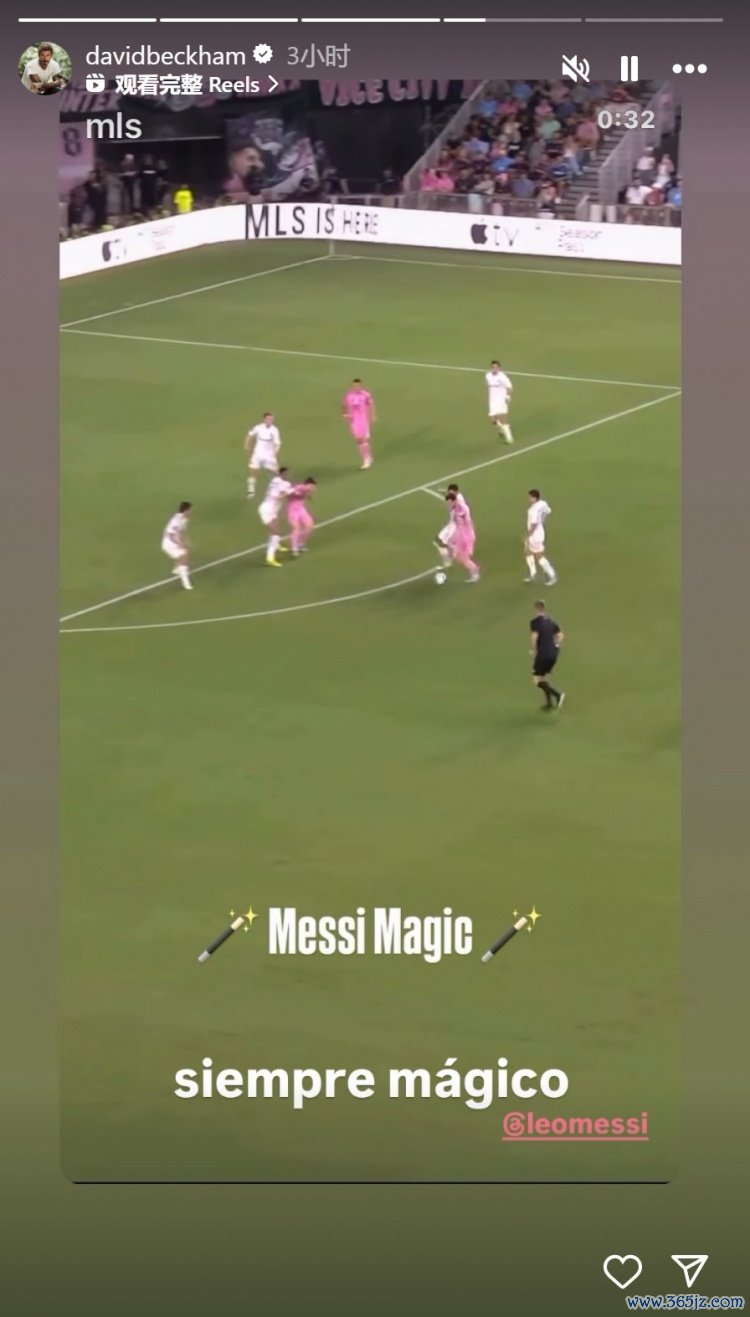 贝克汉姆还转发梅西远射破门的视频,配文:“梅西魔法。遥远充满魅力。”