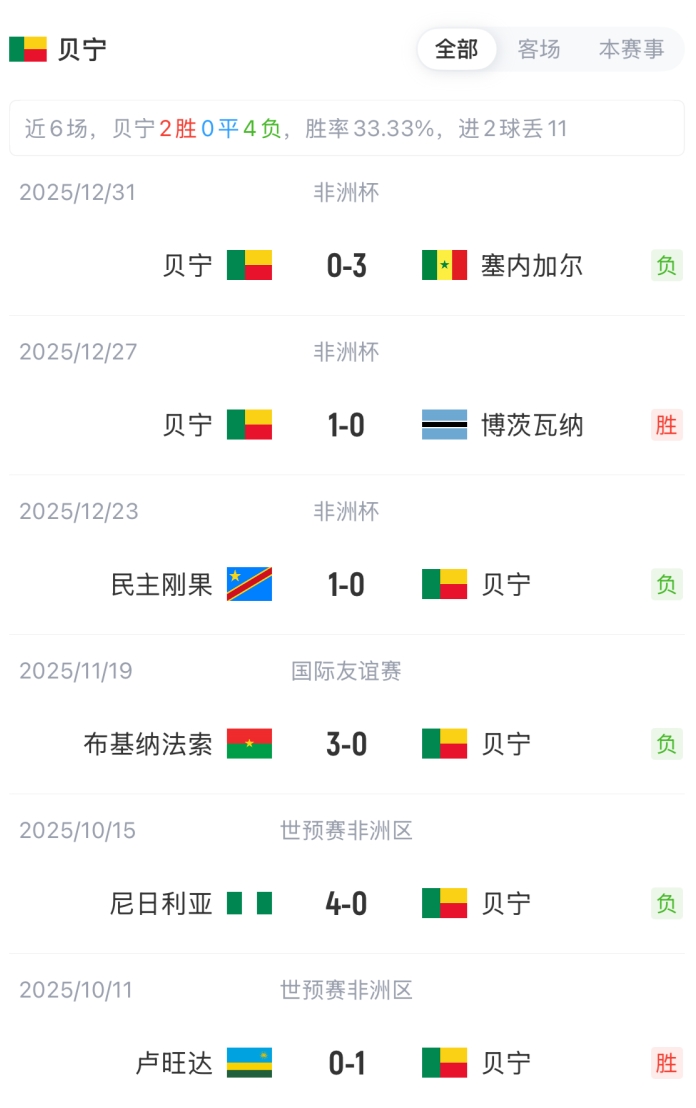 贝宁首发:1-丹吉努、5-罗奇、13-迪亚尼、6-维登、3-欧鲁、8-伊穆拉内、15-阿尔梅达、19-多多、18-奥莱坦、10-艾耶根、17-阿洛克