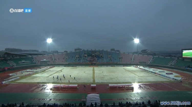 本场比赛,延边龙鼎主场积雪严重,草坪齐被染成了白色。