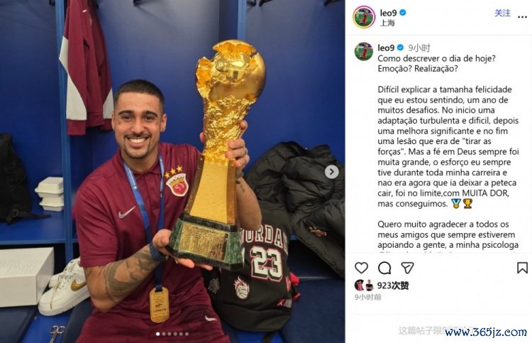上海海港时尚莱昂纳多在社媒写谈:“我该如何描摹今天?是郁勃?还是竖立?