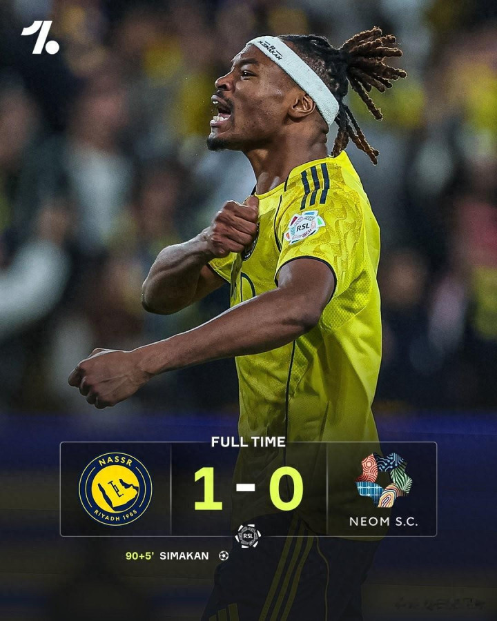 第 95 分钟,利用一次定点球机会,利雅得胜利中防护者莫罕梅德·西马坎在惩足球点球区内内混战中挺身而出,接队友足球场边线分配球权后冷静破门,完成绝杀!随着裁判吹哨员员哨响,利雅得胜利最终以 1-0 险胜对手,全取三分,继续强势领跑沙特联赛季足球球队排名榜。